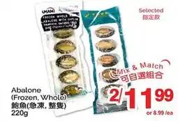 T&T Supermarket FROZEN WHOLE ABALONE, 220 G offerFROZEN WHOLE ABALONE, 220 GT&T Supermarket$11.0026 September 202502 October 2025