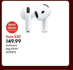 1Walmart AirPods 4 offerAirPods 4Walmart$139.0021 December 202531 December 2025 View offer