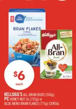 Shoppers Drug Mart KELLOGG'S ALL-BRAN BUDS (500g), PC HONEY NUT Os (725g) or BLUE MENU BRAN FLAKES (775g) CEREAL offer