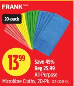 | FRANK All-Purpose Microfibre Cloths, 20-Pk | Canadian Tire | $14.99 | 21 August 2025 | 27 August 2025 | |||