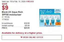 1Costco Bioré UV Aqua Rich SPF50 moisturizer offerBioré UV Aqua Rich SPF50 moisturizerCostco$38.99$29.99Save $919 January 202601 February 2026 View offer