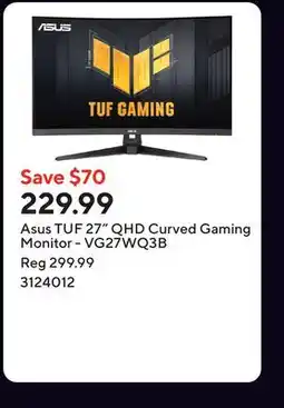 | Asus TUF 27 QHD Curved Gaming Monitor - VG27WQ3B | Staples | $301.91 | $235.49 | $66.42 Discount | 03 June 2026 | 03 December 2026 | |