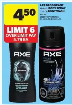 | AXE BODY SPRAY 113 G, DEODORANT 76 / 85 G OR BODY WASH 473 ML | Real Canadian Superstore | $5.99 | 10 August 2023 | 16 August 2023 | |||