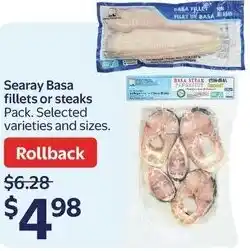 1Walmart Searay Basa fillets or steaks offerSearay Basa fillets or steaksWalmart$6.28$4.98$1.30 Discount06 February 202613 February 2026 View offer