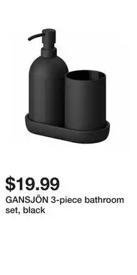 | GANSJÖN 3-piece bathroom set, black | IKEA | $19.99 | 12 March 2026 | 18 March 2026 | |||