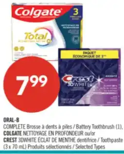 Pharmaprix CREST3DWHITE Toothpaste (3 x 70 mL), ORAL-B COMPLETE or SPINBRUSH Kids Battery Toothbrush (1) offerCREST3DWHITE Toothpaste (3 x 70 mL), ORAL-B COMPLETE or SPINBRUSH Kids Battery Toothbrush (1)Pharmaprix$7.9926 July 202531 July 2025