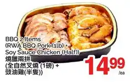 T&T Supermarket BBQ 2 ITEMS (RWA BBQ PORK(1LB)+ SOY SAUCE CHICKEN (HALF)) offer