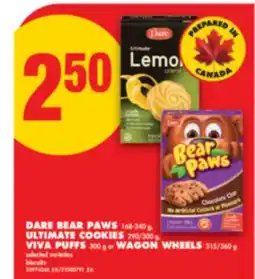 No Frills DARE BEAR PAWS, 168-240 G, ULTIMATE COOKIES, 290/300 G, VIVA PUFFS 300 G OR WAGON WHEELS, 315/360 G offer