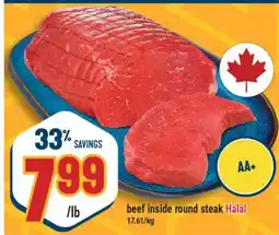 2Marché Adonis Beef inside round steak Halal offerBeef inside round steak HalalMarché Adonis$7.99-33%15 January 202621 January 2026 View offer