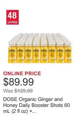 | DOSE Organic Ginger and Honey Daily Booster Shots 60 mL (2 fl oz) × 48 bottles | Costco | $89.99 | 22 December 2025 | 28 December 2025 | |||