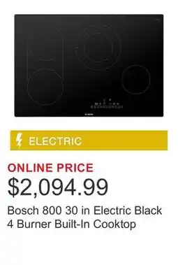 Costco Bosch 800 30 in Electric Black 4 Burner Built-In Cooktop offerBosch 800 30 in Electric Black 4 Burner Built-In CooktopCostco$1,694.9906 January 202512 January 2025