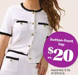 1Giant Tiger button-front top offerbutton-front topGiant Tiger$20.0025 February 202603 March 2026 View offer