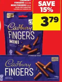 | CADBURY FINGERS, 114 G OR MINI FINGERS, 125 G | Real Canadian Superstore | $4.46 | $3.79 | $0.67 Discount | 05 February 2026 | 11 February 2026 | |