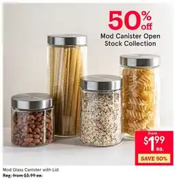 1Kitchen Stuff Plus Mod Glass Canister with Lid offerMod Glass Canister with LidKitchen Stuff Plus$3.98$1.99$1.99 Discount02 March 202608 March 2026 View offer