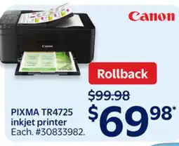 | Canon pixma tr4725 inkjet printer | Walmart | $64.98 | 22 November 2023 | 29 November 2023 | |||