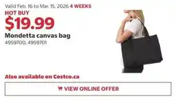 | 2 | Mondetta canvas bag | Costco | $19.99 | 16 February 2026 | 01 March 2026 | View offer | |||