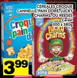 Supermarché PA CÉREALES CROQUE CANNELLE, PAIN DORÉ, LUCKY CHARMS, OU REESES | Cereal offer