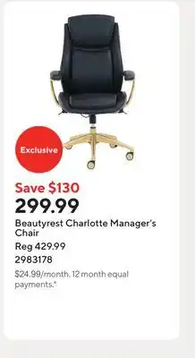 | Beautyrest Charlotte Manager's Chair | Staples | $329.99 | 11 July 2025 | 13 November 2025 | |||