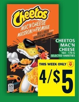 ![]() | CHEETOS MAC'N CHEESE | Food Basics | $5.00 | 10 August 2023 | 16 August 2023 | ||