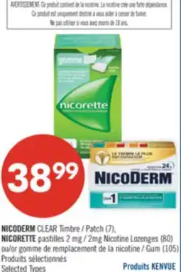 Pharmaprix NICODERM CLEAR Patch (7). NICORETTE pastilles 2 mg (80) or Gum (105) offer