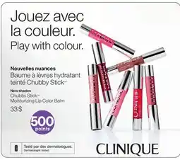 | CLINIQUE Baume à lèvres hydratant teinté Chubby Stick | Jean Coutu | $33.00 | 05 February 2026 | 11 February 2026 | |||