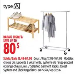 Canadian Tire Selected Garment Racks, Closet System and Shoe Organizers offer