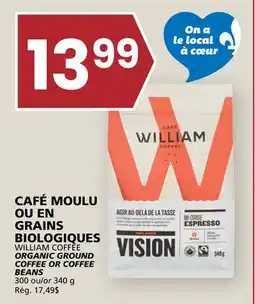 WILLIAM COFFEE ORGANIC GROUND COFFEE OR COFFEE BEANS