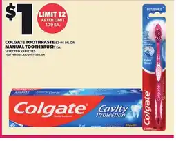 | COLGATE TOOTHPASTE, 52-95 ML OR MANUAL TOOTHBRUSH EA | Loblaws | $1.00 | 23 October 2025 | 29 October 2025 | |||