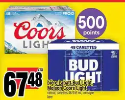 This week there are several deals for Coors available, such as at Super C and other major chains. You will find offers like buy 1 get 1 free and Save up to 25$ or sharp discount prices on BIÈRE LABATT BUD LIGHT, MOLSON COORS LIGHT, Bière Coors Light & COORS LIGHT BEER. With the filters you can easily select by packaging type, quantity, or your preferred retailer.