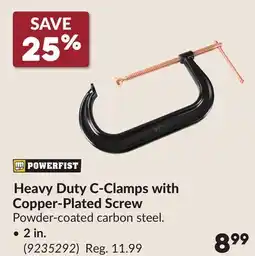 1Princess Auto Heavy Duty C-Clamps with Copper-Plated Screw offerHeavy Duty C-Clamps with Copper-Plated ScrewPrincess Auto$8.9930 December 202511 January 2026 View offer