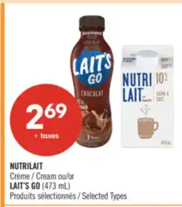 | NUTRILAIT Cream or LAIT'S GO (473mL) | Pharmaprix | | $2.69 | | 26 April 2025 | 01 May 2025 |