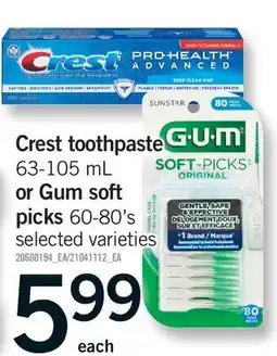 | CREST TOOTHPASTE 63-105 ML OR GUM SOFT PICKS 60-80'S | Fortinos | $5.99 | 08 January 2026 | 14 January 2026 | |||