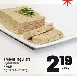 This week there are several deals for Cretons available, such as at Metro and other major chains. You will find offers like buy 1 get 1 free and Save up to 25$ or sharp discount prices on CRETONS RÉGULIERS | REGULAR CRETONS, CRETONS LAFLEUR | LAFLEUR CRETONS & CRETONS CHARLEVOISIENNE | CHARLEVOISIENNE CRETONS. With the filters you can easily select by packaging type, quantity, or your preferred retailer.