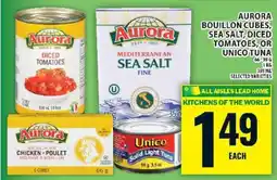 Aurora Bouillon Cubes, Sea Salt, Diced Tomatoes, or Unico Tuna