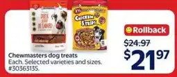 1Walmart Chewmasters Dog Treats offerChewmasters Dog TreatsWalmart$21.9712 March 202618 March 2026 View offer