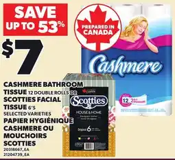 | CASHMERE BATHROOM TISSUE, 12 DOUBLE ROLLS OR SCOTTIES FACIAL TISSUE, 6'S | Independent Grocer | $6.99 | 01 February 2024 | 07 February 2024 | |||