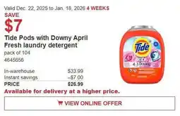 | Tide Pods with Downy April Fresh laundry detergent | Costco | $33.99 | $26.99 | Save $7 | 22 December 2025 | 05 January 2026 | |
