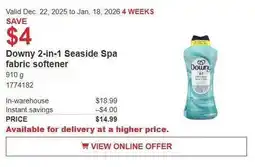 | Downy 2-in-1 Soft + Fresh Fabric Softener Seaside Spa, 910 g | Costco | $18.99 | 22 December 2025 | 28 December 2025 | |||