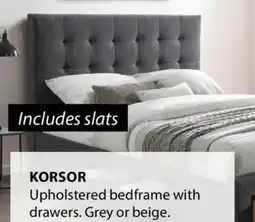 | KORSOR Upholstered bedframe with drawers | JYSK | $1,094.52 | $799.00 | $295.52 Discount | 26 February 2026 | 11 March 2026 | |