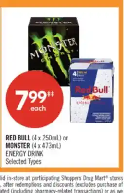 | MONSTER (473mL) RED BULL or GURU (355mL) ENERGY DRINK | Shoppers Drug Mart | $6.00 | 07 December 2024 | 12 December 2024 | |||