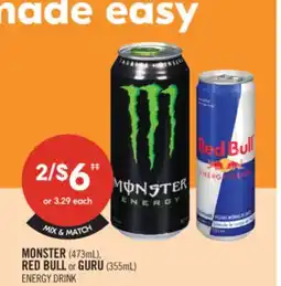 | MONSTER (473mL), RED BULL or GURU (355mL) ENERGY DRINK | Shoppers Drug Mart | $6.00 | 11 May 2024 | 16 May 2024 | |||