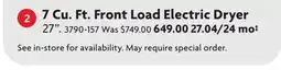 | 6.7 cu. ft. front load electric dryer | Home Hardware | $629.00 | 22 June 2023 | 28 June 2023 | |||