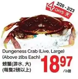 T&T Supermarket LIVE DUNGENESS CRAB offerLIVE DUNGENESS CRABT&T Supermarket$11.8809 January 202611 January 2026