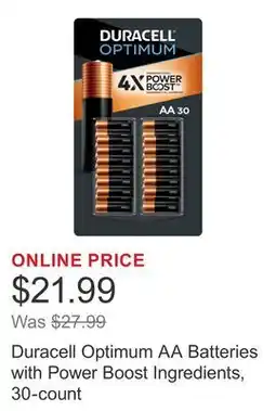 | Duracell Optimum AA Batteries with Power Boost Ingredients, 30-count | Costco | $21.99 | 25 November 2024 | 01 December 2024 | |||