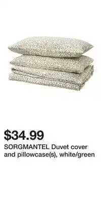 | SORGMANTEL Duvet cover and pillowcase(s), white/green | IKEA | $34.99 | 26 February 2026 | 04 March 2026 | |||