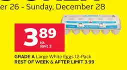 Rexall GRADE A Large White Eggs offerGRADE A Large White EggsRexall$3.8926 December 202528 December 2025