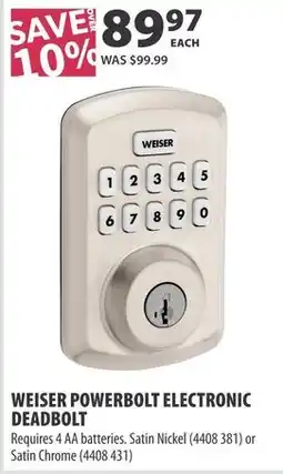 | 1 | Weiser powerbolt electronic deadbolt | Co-op | $99.99 | $89.97 | Save over 10% | 08 January 2026 | 21 January 2026 | View offer | |