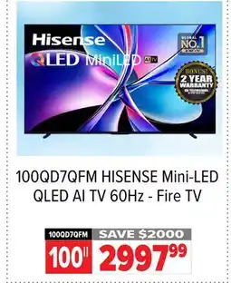 2001 Audio Video 100QD7QFM 100 Hisense Mini-LED QLED AI TV 60Hz - Fire TV offer100QD7QFM 100 Hisense Mini-LED QLED AI TV 60Hz - Fire TV2001 Audio Video$2,997.9913 February 202619 February 2026