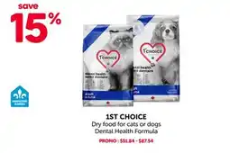 Mondou 1ST CHOICE Dry food for cats or dogs Dental Formula offer1ST CHOICE Dry food for cats or dogs Dental FormulaMondou$60.99$51.84$9.15 Discount29 January 202611 February 2026