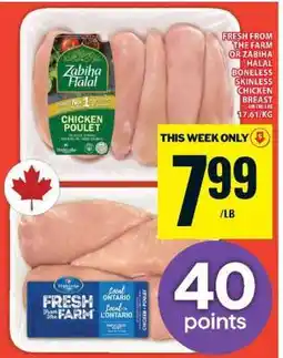 Food Basics Fresh from the Farm or Zabiha Halal Boneless Skinless Chicken Breast offer